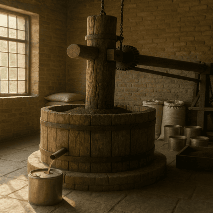 A traditional wooden oil press (kolhu) that gently extracts oil at low temperature, preserving its natural aroma, nutrients, and purity.